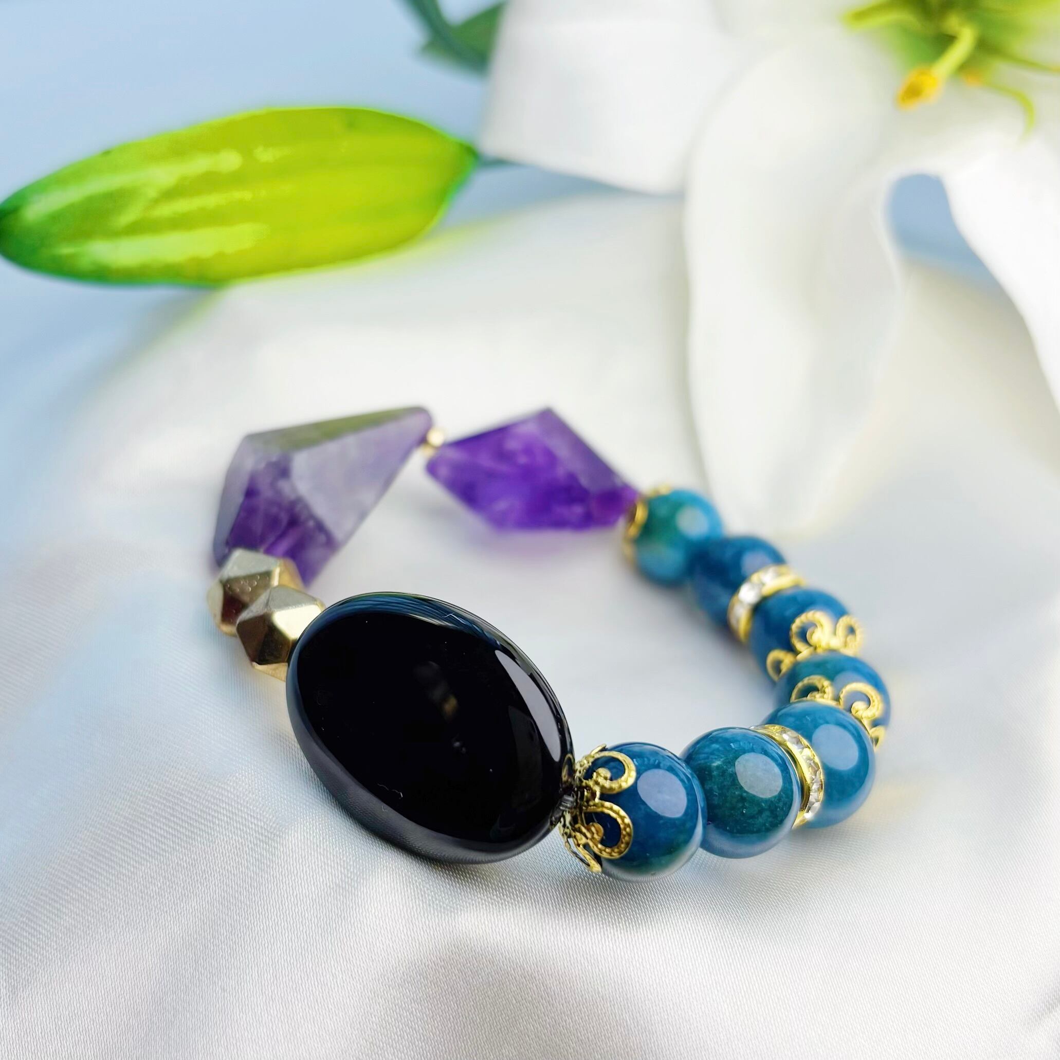 【再販】夜明けの静謐 <アパタイト×アメジスト×オニキス×ヘマタイト> パワーストーンブレスレット