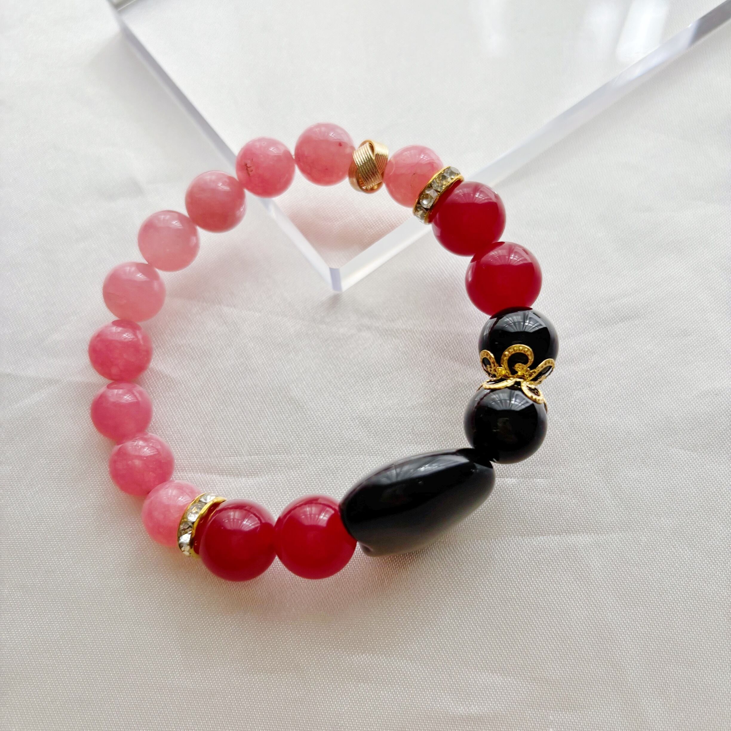 Velvet Night<ピンクジェイド×レッドジェイド×オニキス> パワーストーンブレスレット