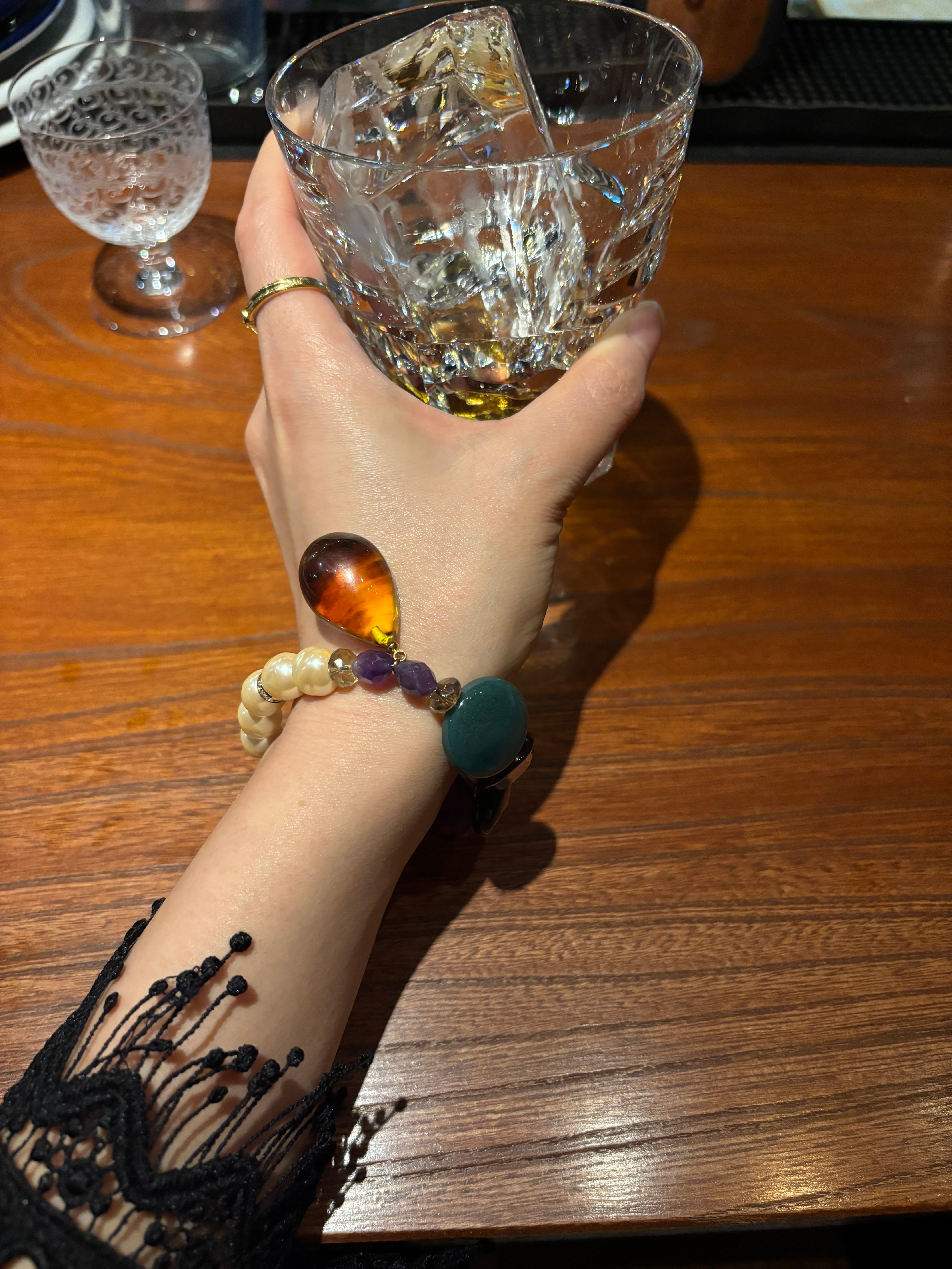 深いアンバーのゆらめきが、手元にしっとりとした艶を生み出します。