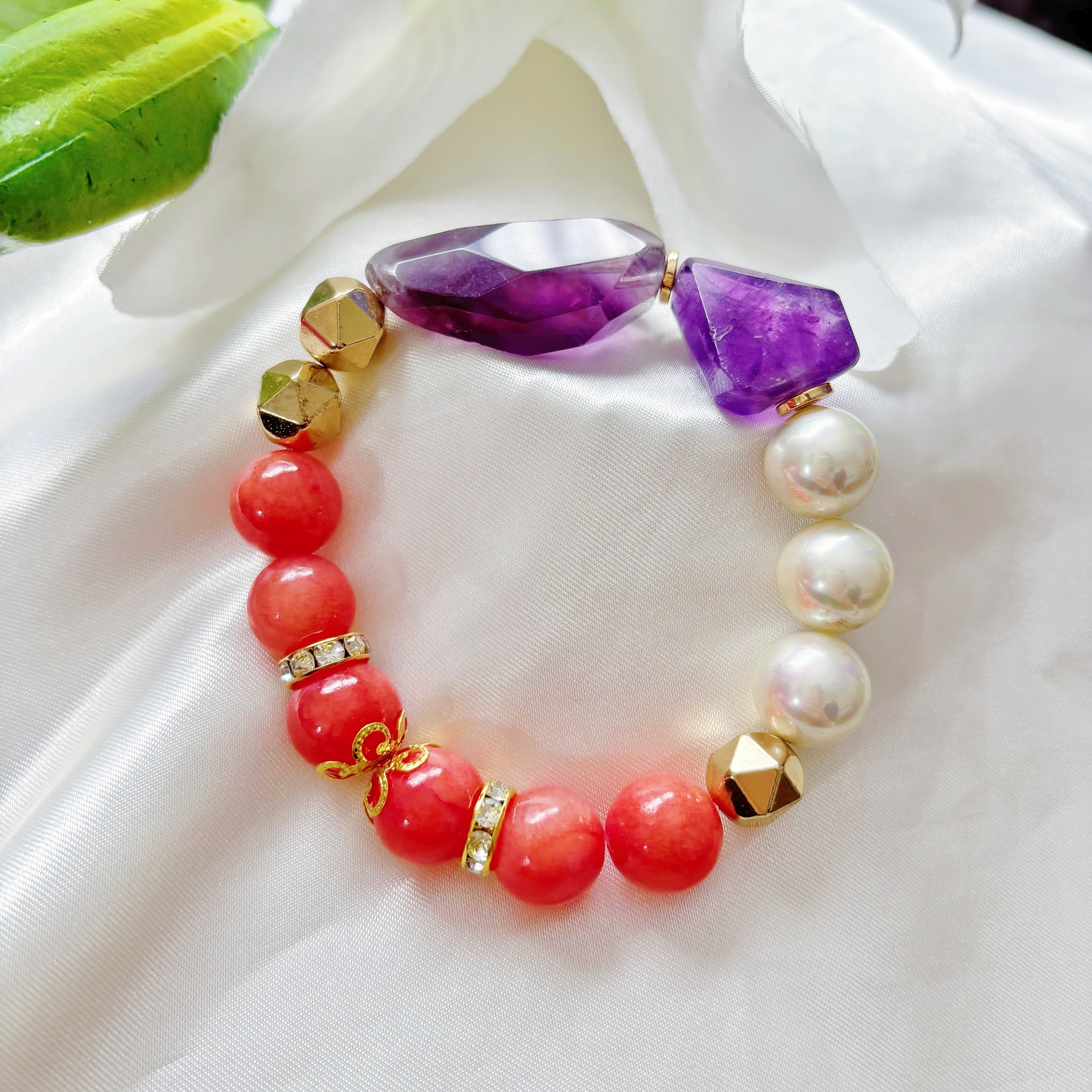 アメジスト × オレンジカルセドニー × 貝パール × ヘマタイト