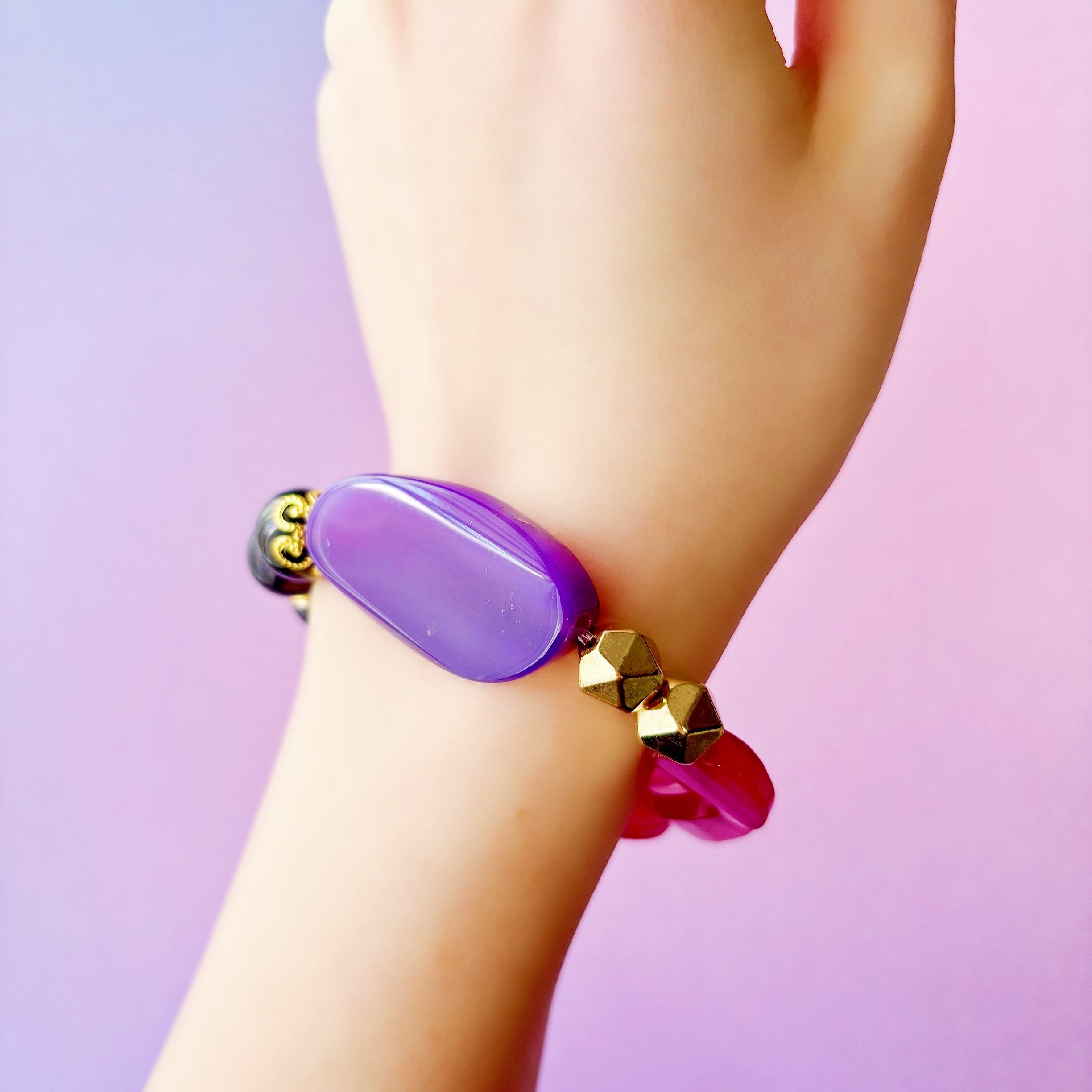 異国の夜空を思わせる知的で華やかなパワーストーンブレスレット〈ブルーメノウ×ブルーゴールドストーン×ピンクカルセドニー×ヘマタイト〉