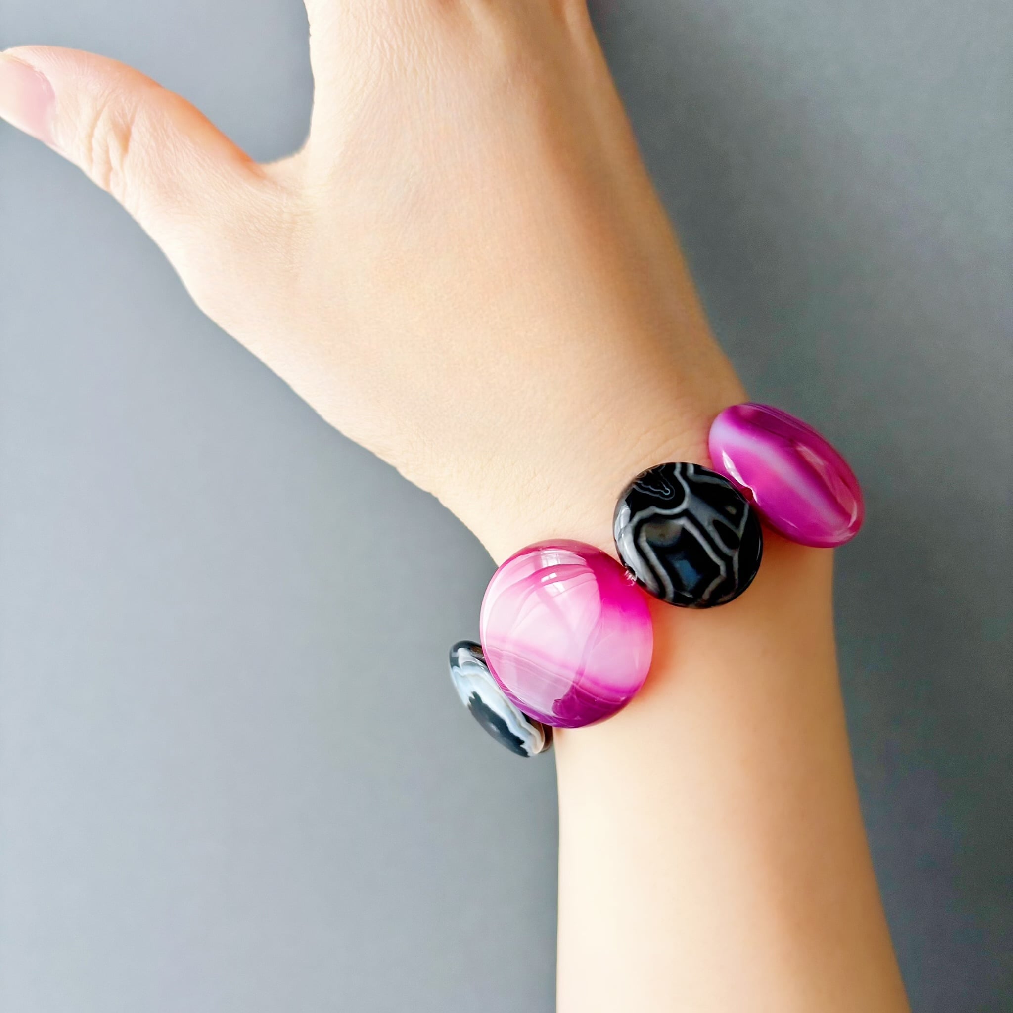 かわいいだけじゃ物足りない!黒×ピンクの大人モダンな大ぶりパワーストーンブレスレット<ピンクアゲート×オニキス>
