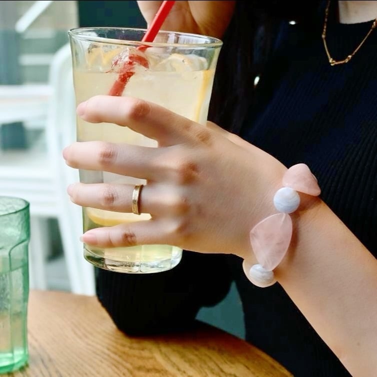 淡いピンクのローズクォーツを組み合わせた天然石ブレスレットです。